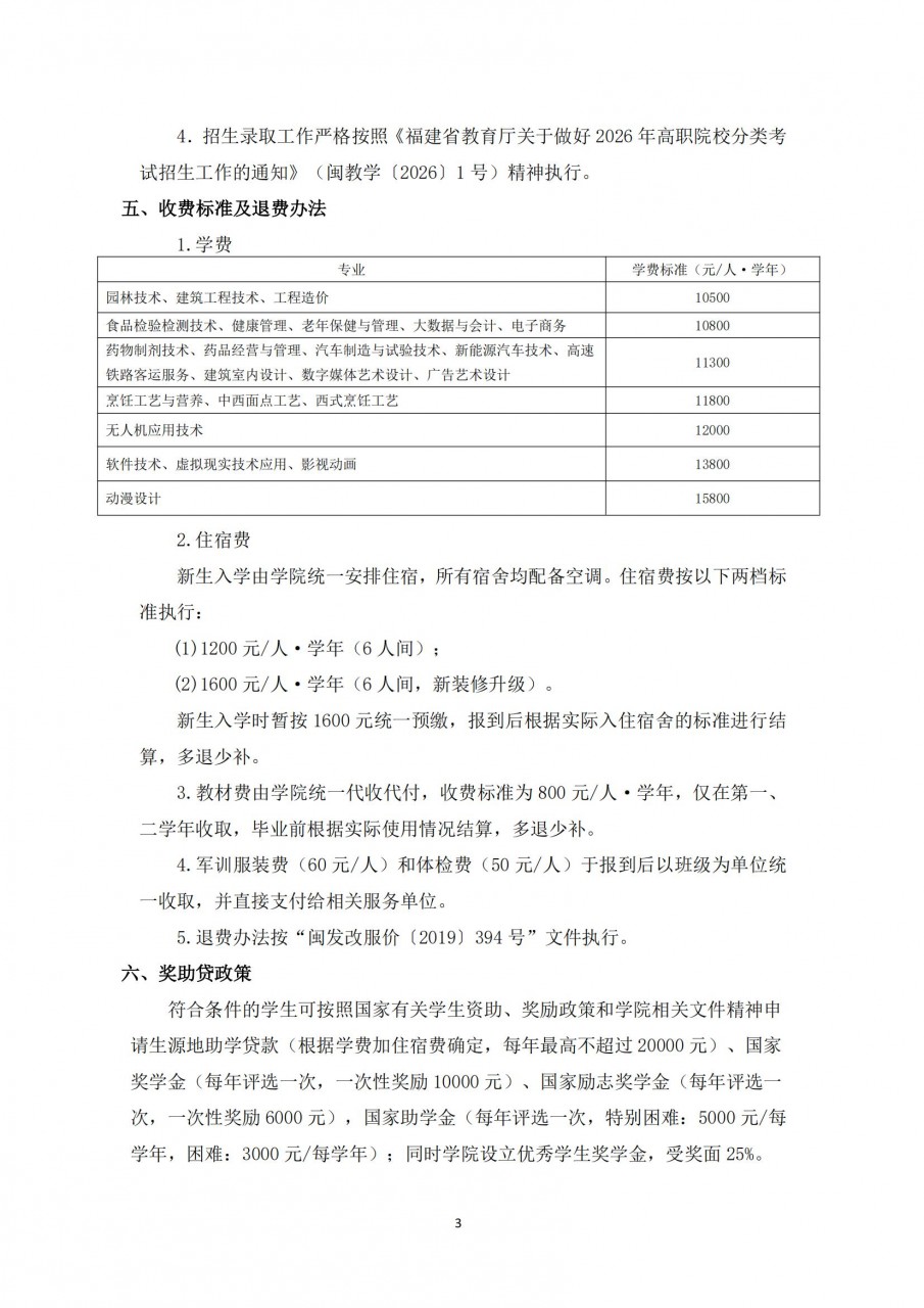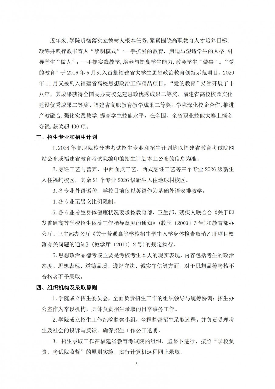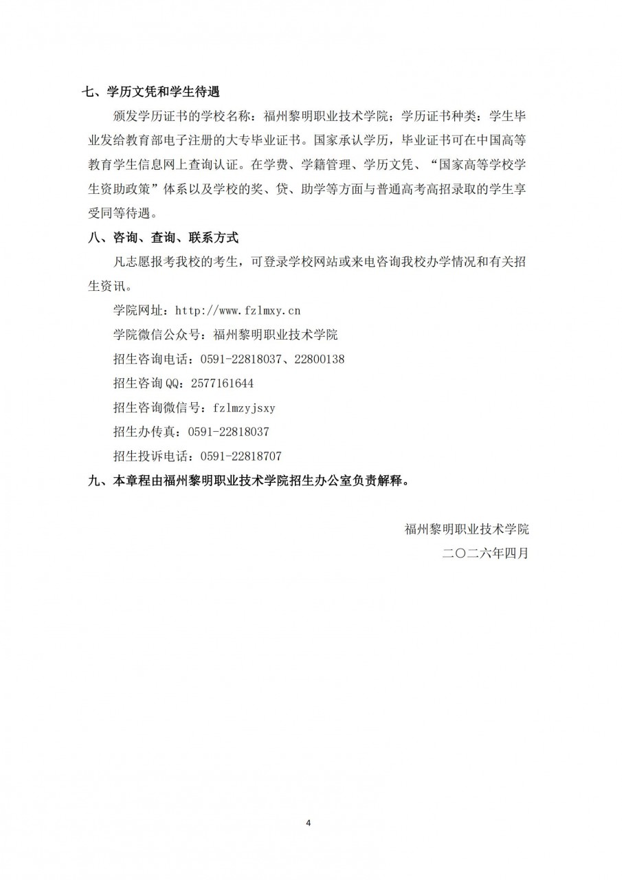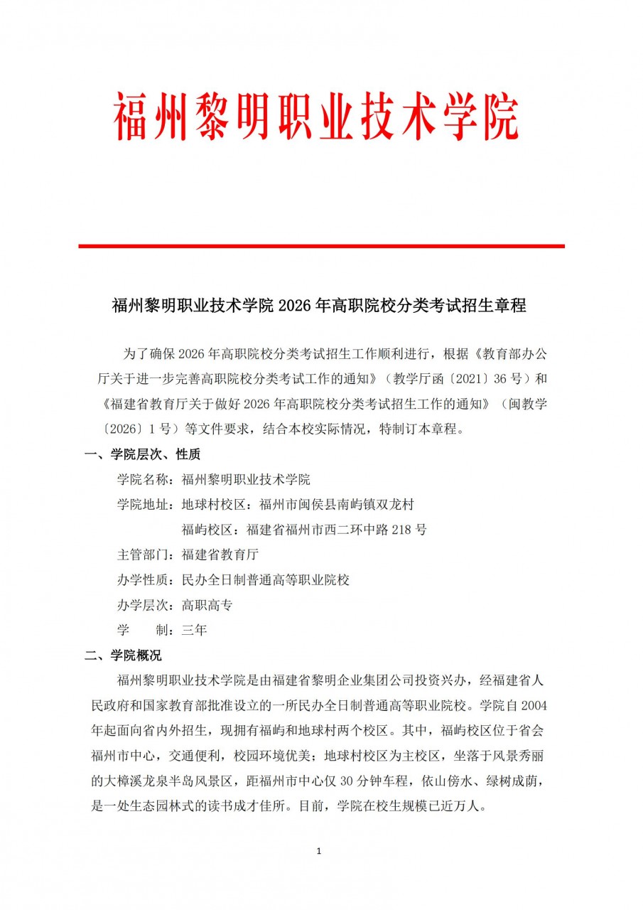 福州黎明职业技术学院2026年高职院校分类考试招生章程