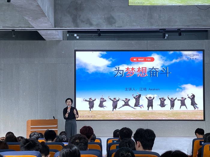 江艳总监从企业发展的角度看规划、从岗位发展的角度定规划、从没有方向的懵懂设计规划这三个角度切入,以终为始的职业规划和如何适应角色转变等方面阐述了她对职业生涯规划的理解。通过生动的案例分析及实用技巧的分享,引导新生提高自我认知、职业认知、找准职业发展方向、定位职业目标、合理规划职业路径,制定实施计划。她希望,新同学们能从入学第一天开始,勇敢地迈出规划生涯的第一步,用实际行动去追寻自己的梦想,创造属于自己的精彩人生。