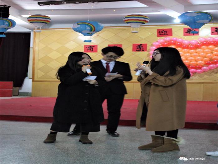2018年1月3日晚上6点半,商务系迎新年茶话会在活动中心隆重举行!商务系主任郑禾老师,学工处副处长王新华老师,学工处聂计闽老师,商务系党支部书记毛永千老师及辅导员、老师代表与商务系学生们一同观看了这场青春盛宴。