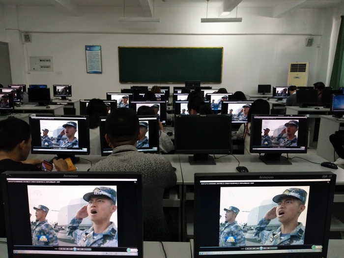 奋进新时代,扬帆新航程。4月12日上午,中央军委在南海海域隆重举行海上阅兵。中共中央总书记、国家主席、中央军委主席习近平检阅部队并发表重要讲话。为进一步宣传党的十九大精神,持续开展“百名党员宣讲十九大”宣讲活动,进一步激发学生爱国热情,振奋民族精神,进一步增强为实现中华民族伟大复兴而学习奋斗的坚定信念,商务系党支部特此组织教工党员深入我系2016级、2017级在校生利用早读课时间观看海上阅兵。此次阅兵凝聚了近70年来人民海军的不懈奋斗,彰显了党的十八大以来建设强大的人民海军的巨大成就,展示了人民海军崭新面貌,激发了学生们强国强军的坚定信念。