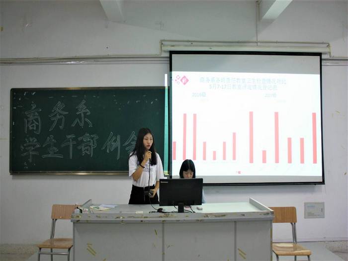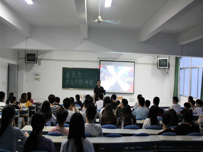 2018年5月21日晚,商务系在阶梯教室307召开学生干部例会部署学生文明迎评工作。党支部书记毛永千、全体辅导员及商务系两委主要学生干部和16、17级各班级班长、团支书、学习委员、劳动委员参加会议。