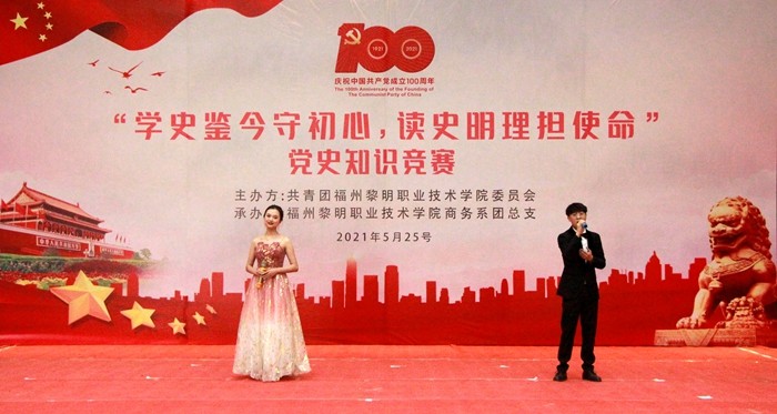 为庆祝中国共产党成立一百周年,热情讴歌党的光辉历程和丰功伟绩,进一步弘扬党的优良传统,保持和发扬党的先进性,激励广大师生牢记党的宗旨,坚定理想信念。2021年5月25日,福州黎明职业技术学院2021年“学史鉴今守初心,读史明理担使命 ”党史知识竞赛决赛在学术报告厅举行。学院党委书记陈建国、党委副书记王新华、商务系主任郑禾、学工处副处长陈伟伟等莅临现场,商务系各教研室主任、各系党支部书记、辅导员及学生代表200余人到场观看。