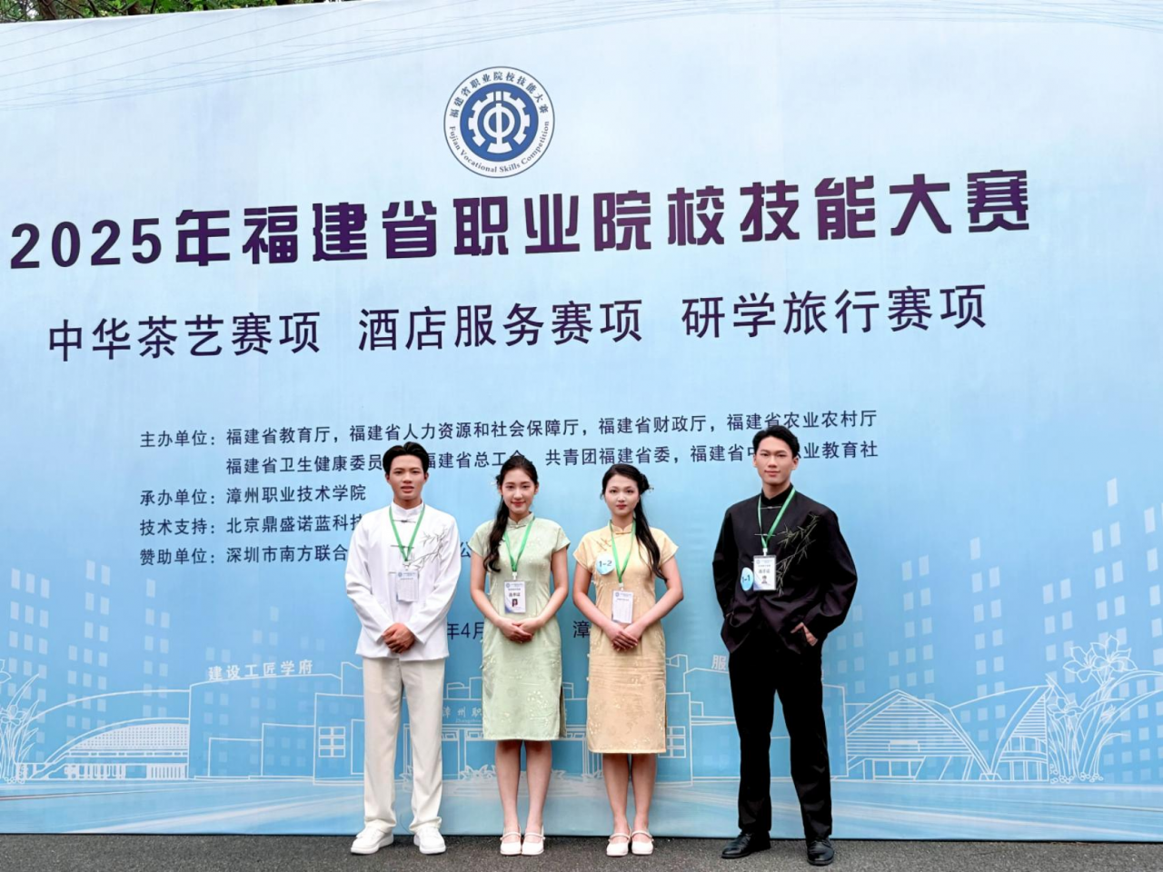 2025年4月12日,由福建省教育厅主办的2025年福建省职业院校技能大赛“研学旅游”赛项在漳州职业技术学院圆满落幕。由我校汽车与现代交通系高速铁路客运服务专业余红老师和包文玄老师指导,高速铁路客运服务专业学生陆嘉威、温馨悦、郑文静、林益炜组成的参赛团队,在全省25支参赛队伍经过激烈的角逐后脱颖而出,荣获大赛三等奖。