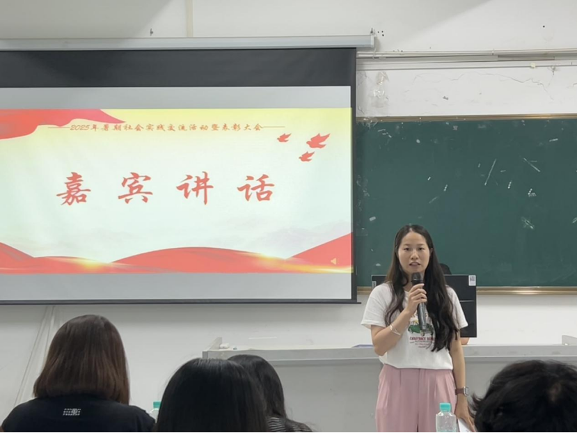 汽车与现代交通系团总支副书记黄晓梅高度称赞暑期暑期社会实践开展扎实、亮点突出,肯定社会实践成果丰硕,同时认可学子们克服实践挑战、提升自身本领的表现,最后寄语未来,话语恳切有力,极大鼓舞了在场师生。