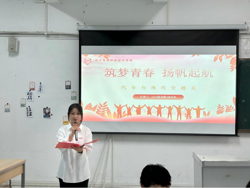 在成果分享环节,24级高铁4班张虹和24级新能源5班黄凯南结合自身实践经历,生动讲述了在岗位实习、社会服务、产业调研等不同实践场景中的所见所闻、所做所思,分享了克服困难的过程、收获成长的感悟。从专业知识应用到社会责任感提升,从个人能力突破到团队协作收获。