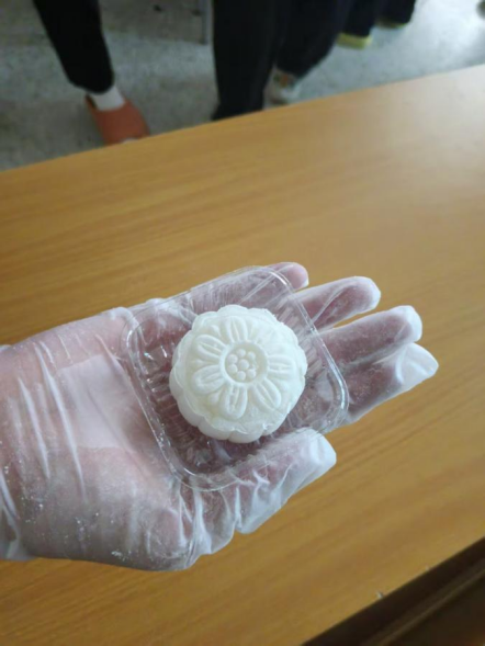 活动开始大家戴好一次性手套,揉制冰皮、包裹馅料、按压模具。经过一番制作,一个个造型精致、纹路清晰的冰皮月饼新鲜出炉,大家还给自己的作品命名,赋予其独特的节日寓意。