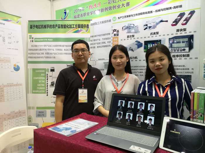 6月9日,在由团省委、省教育厅、省人力资源和社会保障厅、省科协、省学联主办的“挑战杯――彩虹人生”福建省职业学校创新创效创业大赛中,我系毛永千老师指导的《基于电缸机械手的农产品智能化加工方案提供者》荣获生产工艺革新与工作流程优化竞赛类项目一等奖。
