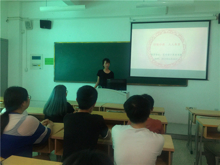 活动开始,党支部书记林鸿燕发起垃圾分类倡议,倡议党员及党员志愿者要发挥模范带头作用,自觉进行垃圾分类,努力践行绿色低碳生活理念。党员们在“关于积极支持和践行垃圾分类”的倡议书上郑重写下自己的姓名,承诺带头争当垃圾分类的先行者、宣传者和监督者。紧接着党员志愿者们从如今社会的环境现状入手,为支部各班学生详细介绍了垃圾四分类的知识,并通过PPT图文并茂地讲解,使大家对垃圾分类有了进一步的认识,也体会到了垃圾分类的重要性。
