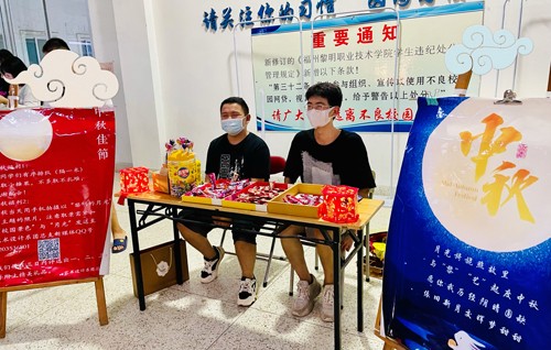 中秋当天,为了营造一个喜庆的节日氛围,我系工作人员在宿舍楼下挂起了一排排灯笼,并用提前买好的精美中秋礼品在楼下摆起了专门的活动摊位。
