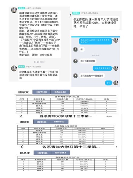 我系建立“系团委书记—团干部—青年学生”的三级“大学习”行动体系,根据每一期的学习要求,第一时间发布学习通知;细致推进学习活动,迅速收集学习情况并及时汇报反馈,让学习成为一种习惯的坚持,使成果成为一种必然。我系学生“青年大学习”参与率连续3期排名全校前列且达到100%,力助我校“大学习”排名全省前列。