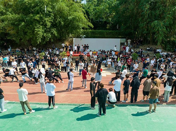 本次活动以拔河项目为主,再配以两三项小团队活动。在拔河项目中,比赛以班级为单位,抽签分组决定比赛顺序,两两竞争,实行淘汰制晋级方式。比赛中同学们互相鼓励,一起体验成功的喜悦,一张张笑脸更显得青春洋溢,活力四射。在其他五六人为单位的小项目中,同学们也积极参加,玩得不亦说乎。