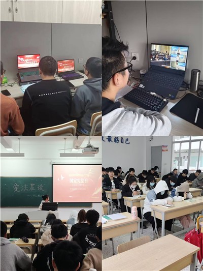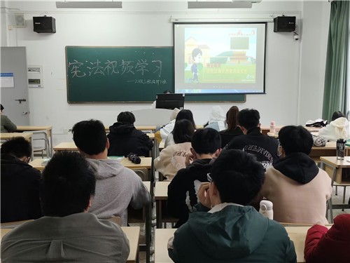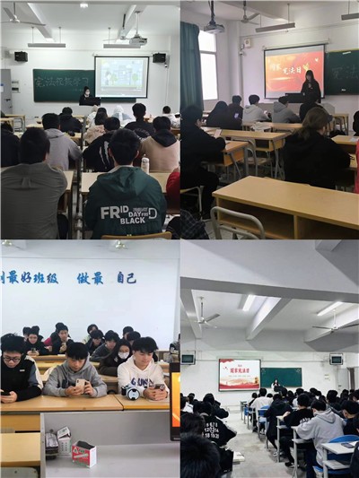 此次活动分为宪法宣传主题班会、宪法晨读、宪法视频学习三个部分。12月3日晚上,我系各专业辅导员在宪法宣传主题班会上,就宪法的诞生、宪法完善历程以及在国家生活中的重大意义向同学们进行了宣讲。12月4日早上,各班团支书利用早读时间带领同学们进行了宪法晨读,同时通过观看学习宪法小视频,让同学们了解了什么是宪法、宪法的地位、宪法形成的意义等相关知识,另外新生军训班级也组织了同学们在宿舍观看全国青少年普法直播。