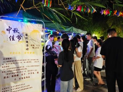 平分秋色一轮满,长伴云衢千里明。从盛夏到金秋,从新月到满月,又是一年的花好月圆,千百年来,花好月圆人团聚,是中国人心头最温情的期盼。为增强同学们对中华传统节日的关注,在大学校园生活中体验和切实感受中秋节日氛围,以形式多样的趣味校园文化活动吸引更多同学积极了解、知悉我国的中秋佳节,2024年9月17日,我系学生会于黎明湖畔旁开展了以“平分秋色,佳节梦圆”为主题的中猜灯谜趣味活动。校内的师生们共聚一堂,赏花灯猜灯谜,共度佳节。