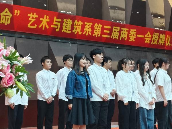 紧接着,进入新生干事授牌环节,各位嘉宾老师为“两委一会”新一届学生干事授牌。