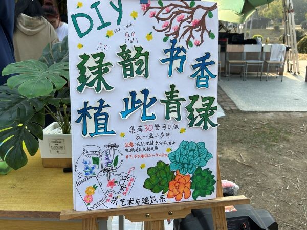 活动现场还准备了多肉盆栽,参与活动的同学可以拍照记录,再根据活动宣传要求发朋友圈,经认证后可以获得一盆属于自己的多肉,将绿色带回家。