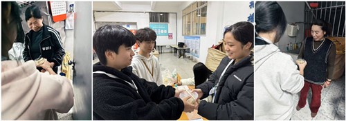 自律会干部们代表为学院后勤工作人员送上热气腾腾的饺子,以一碗热食传递对坚守岗位者的敬意与感恩,让暖意跨越身份的边界。