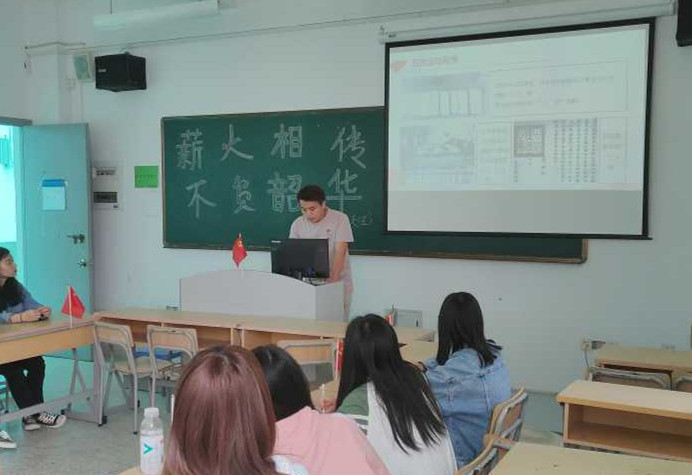 我系团总支副书记陈考功同学带领大家一起回看了4月30日习近平总书记参加五四运动100周年大会的视频,他谈到,“以爱国主义和奋斗担当为主要内涵的五四精神激励我们在新时代征程中前行。我曾参与多次志愿者互动,我深刻认识到将小我融入祖国的大我、到人民群众中去、到新时代新天地中去对青年而言的重要意义。作为当代青年,我们生逢其时,也重任在肩,应发扬奋斗精神,让青春之我在新时代改革开放中绽放!”