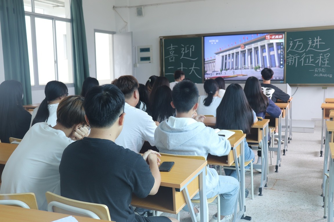 “喜迎二十大,迈进新征程”,为了迎接党的二十大召开,2022年10月16日早上10:00药学系组织全体师生分别于521教室、学术报告厅和线上观看中国共产党第二十次全国代表大会开幕式。