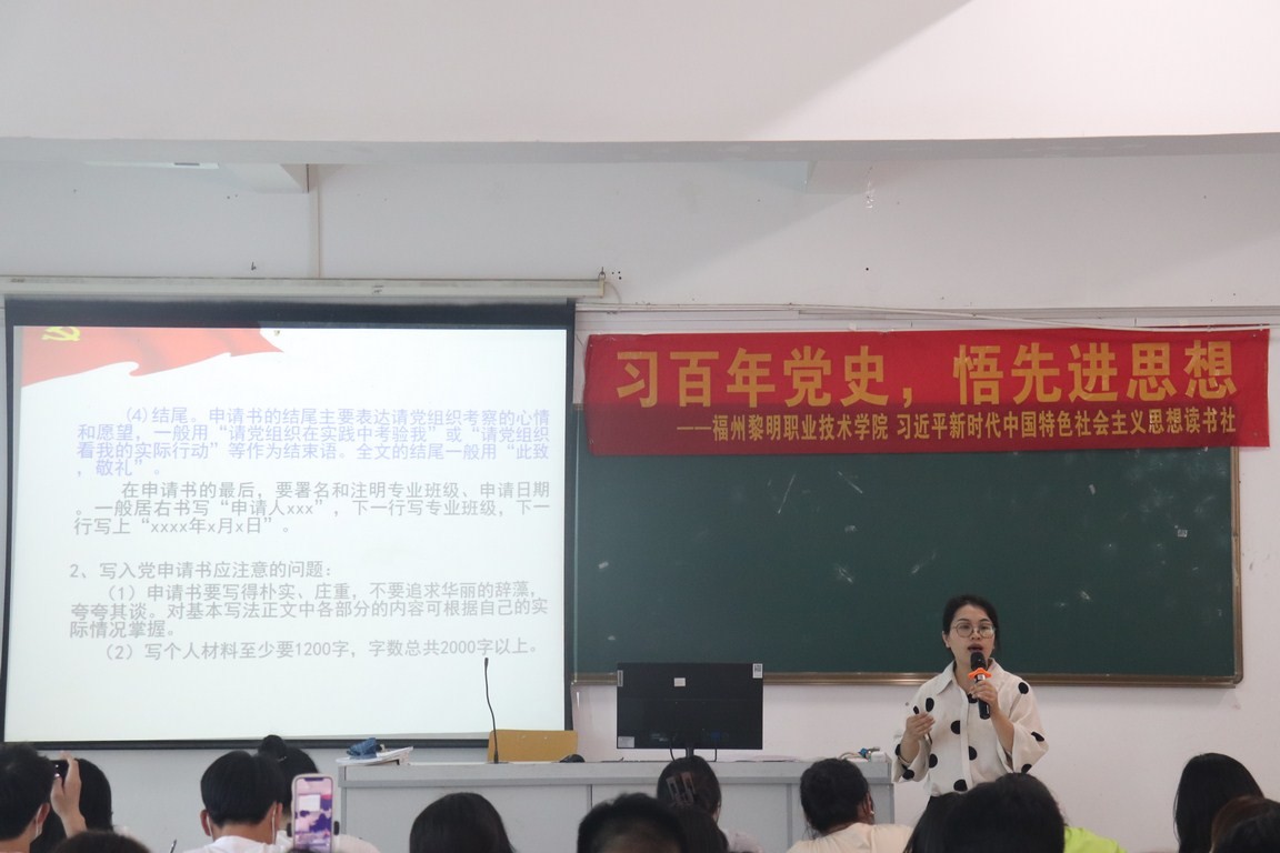 课堂上,郑爱清书记首先阐述了入党积极分子的基本要求,就发展党员全过程中涉及入党文书种类、规范撰写入党文书的意义和入党文书的写作原则等,随后重点围绕《入党申请书》、《思想汇报》、《入党志愿书》以及《入党转正申请书》等几类常用的入党文书写作的含义、格式、内容和注意事项做了详细的讲解,并采用多媒体和直观的展示了标准书写的范例,就如何正确书写入党文书等方面的要求做明确规范,引导入党积极分子们更好的规范入党文书的书写。最后,郑爱清书记特别强调,正确书写入党文书是作为入党积极分子以及未来成为党员的必修课之一,入党文书写作要做到“真思想、新内容、写动态”,忌抄袭、忌假话、忌空话。-8MFfv.jpg)