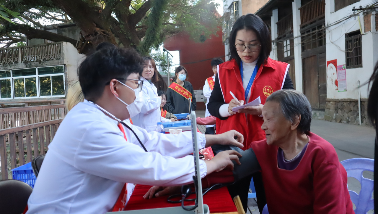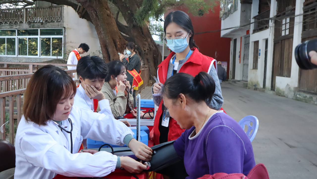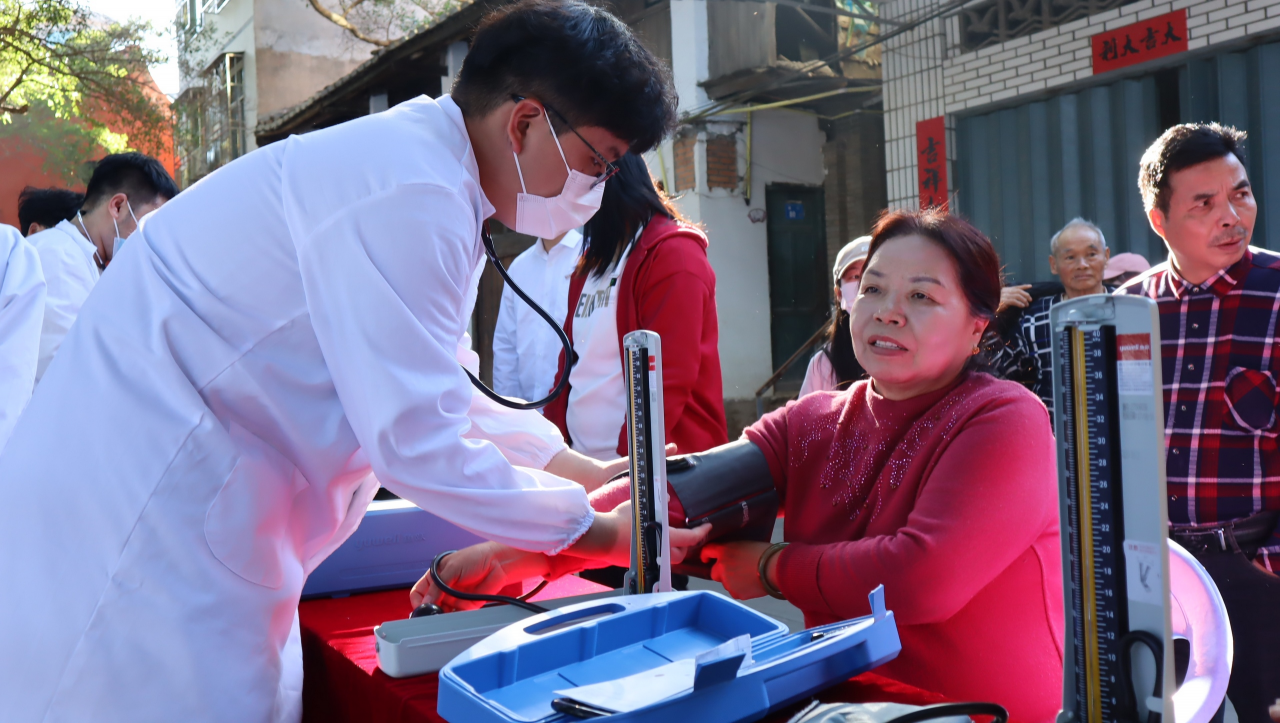 为贯彻落实健康中国行动要求,提高居民对高血压的认识,有效预防心脑血管疾病,增强全民的自我保健意识,弘扬敬老助老中华传统美德。2023年12月14日,药学与健康管理系党支部在双龙村开展将药学相关专业师生志愿服务与基层健康科普相结合的系列志愿服务活动,本次活动由药学与健康管理系党支部书记郑爱清老师带队,队伍成员有其他党员老师以及志愿者骨干。