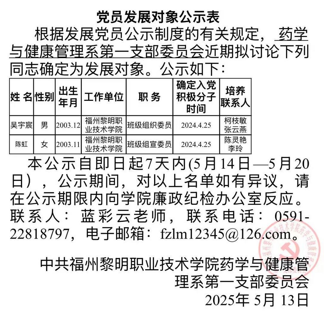 第一支部党员发展对象公示表