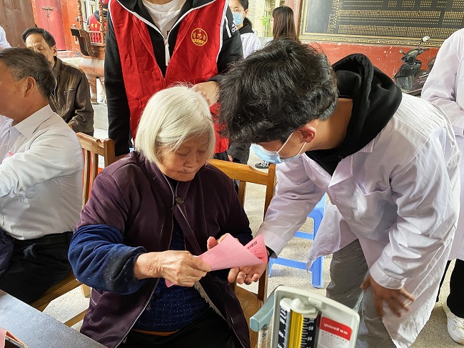 活动通过悬挂横幅、发放宣传手册和福州话讲解等方式向来往的村民宣传社区健康常识。当天服务村民近百人,热心的志愿者们也受到广大村民的热情欢迎。志愿者们尽职尽责,对村民进行血压测量,针对每个村民的不同情况,耐心地叮嘱他们各种日常注意事项,详细介绍预防老年人常见疾病知识,提出合理的膳食、运动等生活指导,做到“未病先防”“既病防变”“预后防复”等。