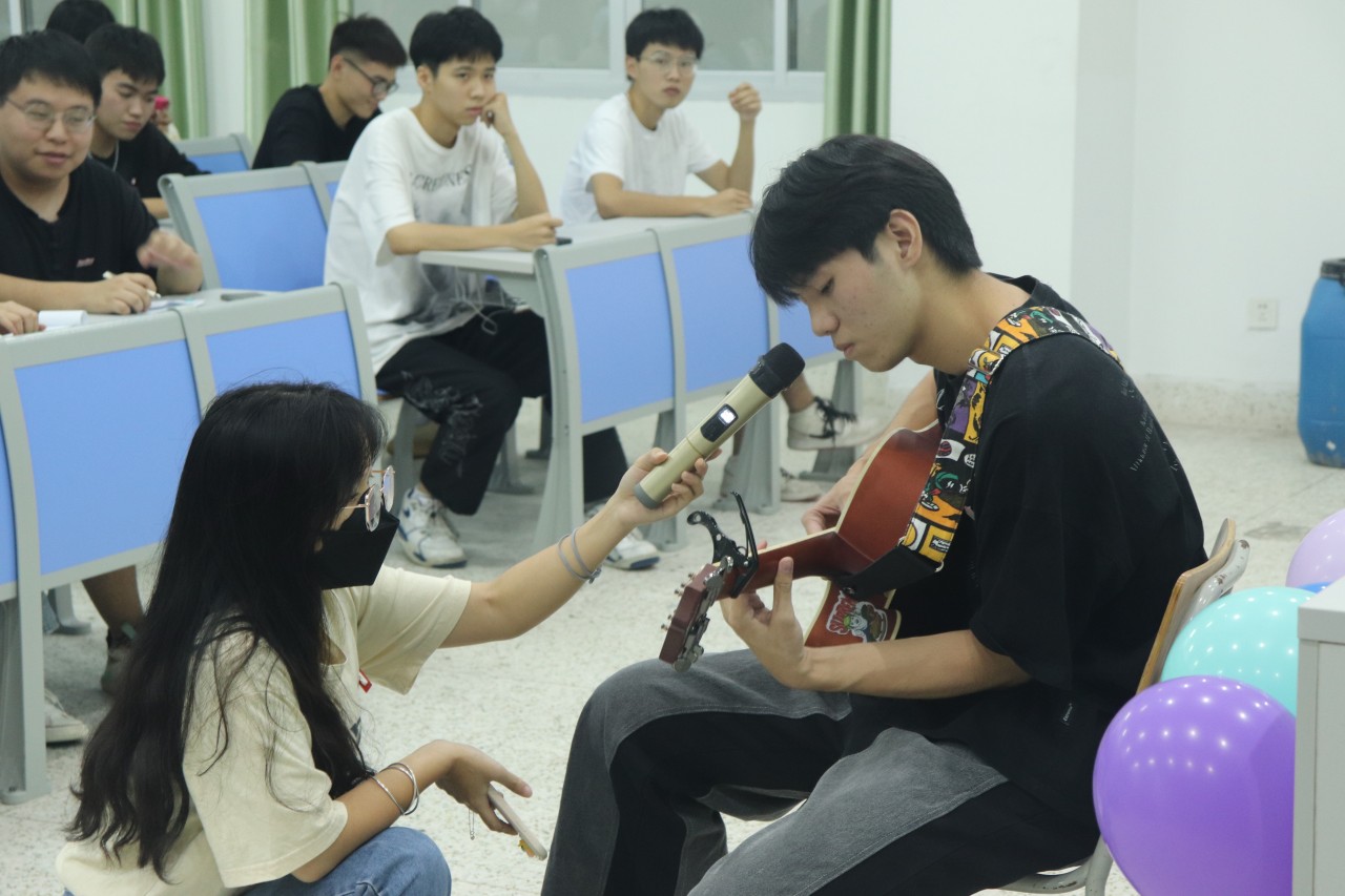 18:00后观众与评委入席,选手准备就绪。由文艺部郑泽兴与林晓莉进行主持,向观众介绍评委团后拉开了演唱序幕。选手们相继上台,一展歌喉,用最真挚的歌声打动评委们的心。在选手们演唱完毕后,我们的比赛也接近了尾声。经过紧张的等待与评委团严谨的打分评票,最终交由主持人宣布入围名单。