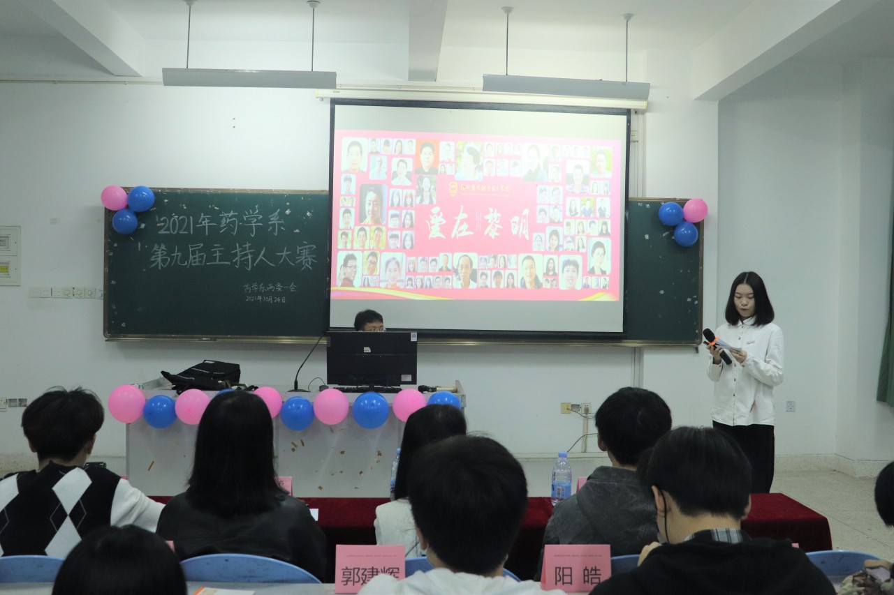 2021年10月24日晚上六点三十分在阶三教室举行由药学系主办的主持人大赛。莅临此次大赛的评委有药学系团总支副书记胡钰雯老师、福建新知教育许一香老师、学生会主席王朝磷、学生会副主席钟源。本次活动本着为了更好的锻炼提高大学生的语言沟通能力,自我展示能力以及加强同学们的素质拓展能力的初衷。
