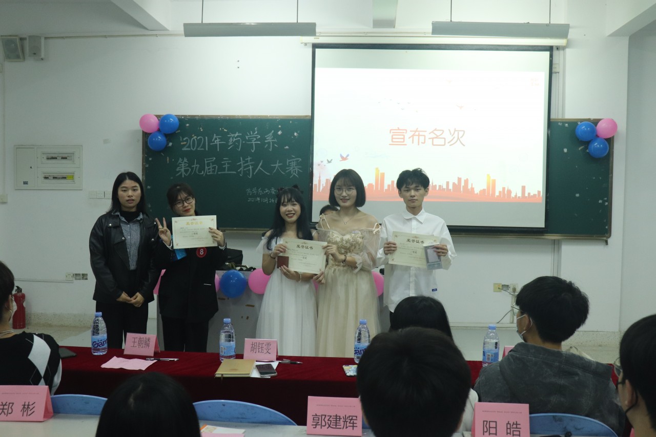 药学系第九届主持人大赛在尚上、宋煜琳同学的主持下顺利展开。由主持人为大家宣读比赛规则,比赛共设有两个环节,第一个环节是选手的一分钟自我介绍,第二个环节是两分钟的模拟主持。本次比赛分有一等奖,二等奖,三等奖各一名,优秀奖三名。