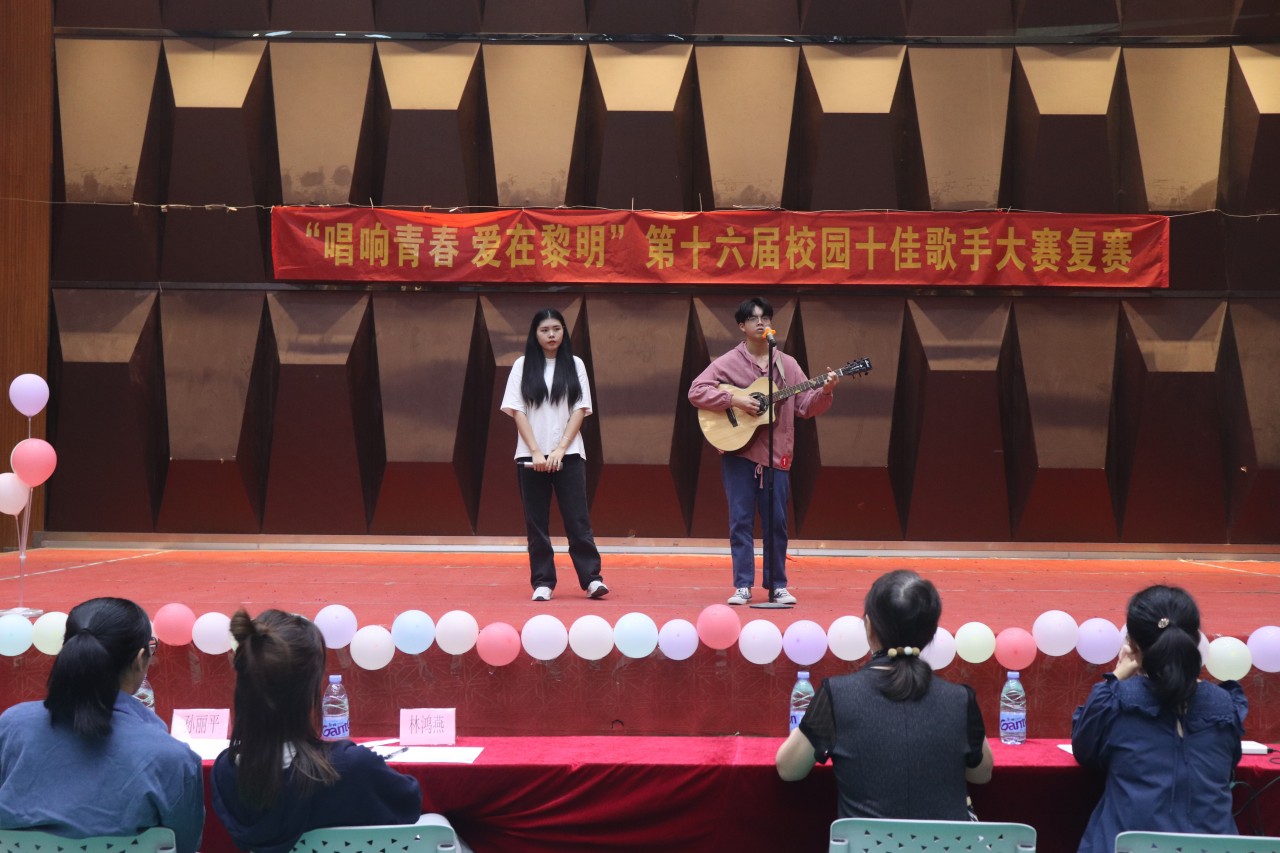 经过近一个月时间的层层选拔,27名各系成功从初赛晋级的选手站上了今天下午复赛的舞台上同台竞争最后的决赛名额。复赛的场面异常火爆,他们怀揣着激情与梦想,选手们一上台便让在场所有人感受到他们展现才华的渴望和洋溢青春的热情。歌曲《默》的音乐一起,就预示着比赛的开始,台下同学们热情高涨,呐喊着为上台的每一位选手加油、鼓励、助威。随着一次次精彩演唱,将比赛现场的气氛带动得淋漓尽致。参赛选手们的精彩演出,让我们感受到了他们的才华横溢,感受到了他们青春的飞扬个性!