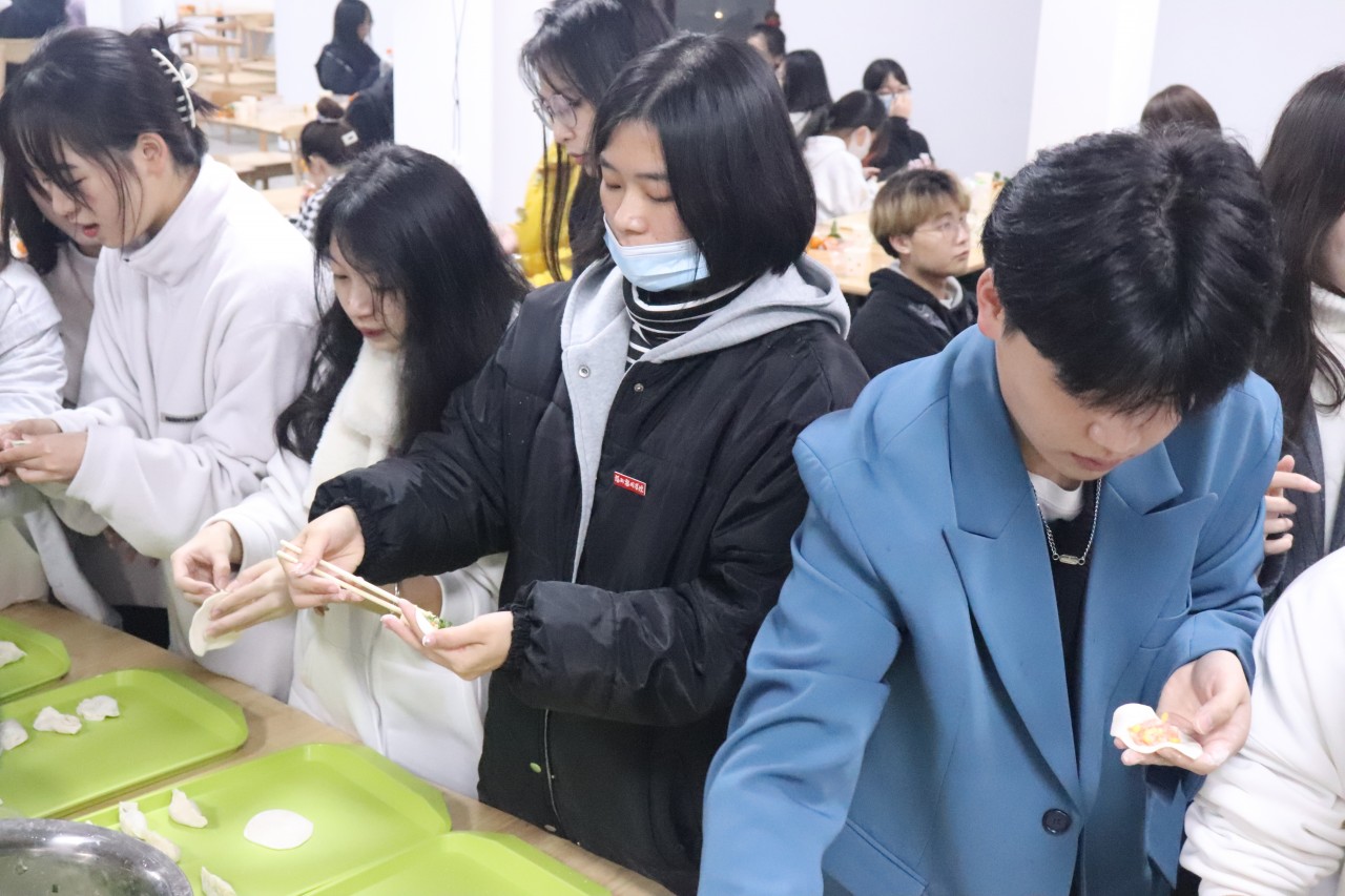 晚上18:00活动准时进行,在食堂工作人员的帮助和同学们积极配合下,各种物料和食材提前准备好,领导、老师们也陆续到场。包饺子环节,同学们的热情高涨,围绕着餐桌一圈又一圈,随着同学们的努力,各式各样的饺子都展示在大家面前,有的用料十足,包出的饺子个大肚圆,彰显出北方的豪爽与大气;有的大小均匀,呈现出南方的清秀与灵动。大家都有说有笑,展示各个地区对于饺子的不同包法,分享包饺子的经验,大家的脸上洋溢着兴奋与自豪。