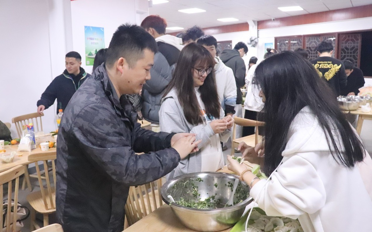 经过大家不懈努力,热气腾腾的饺子和汤圆在大家的期待中被端上了餐桌,大家互相分享包的饺子和汤圆,感受着家温暖。在吃饺子的过程中,还有两系同学为大家带来冬至歌舞表演,最后王新华老师一曲《爱拼才会赢》更是将气氛拉到高潮,王书记讲到这首歌送给各位同学,希望各位同学在人生道路上能不断拼搏不断成长,活动现场时刻洋溢着幸福与欢乐。