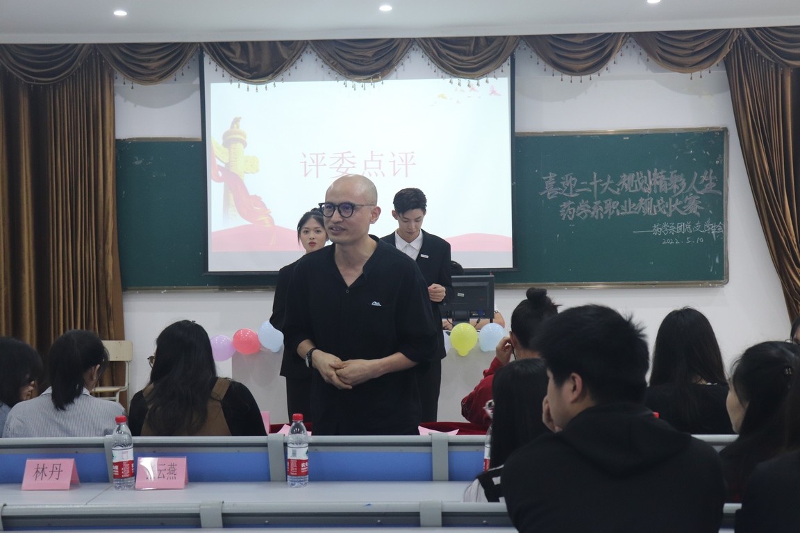 为了引导同学们正确定位自己的发展方向,树立正确的成才观、择业观和就业观,提高自己的综合素质和就业创业能力,药学系举办了以“喜迎二十大,规划精彩人生”为主题的职业生涯规划初赛。大赛于2022年5月10日下午2:30在207教室进行。出席本次大赛的有药学系主任曾建雄老师、团总支副书记鲍佳佳老师、辅导员林玫老师以及药学系各位老师们。