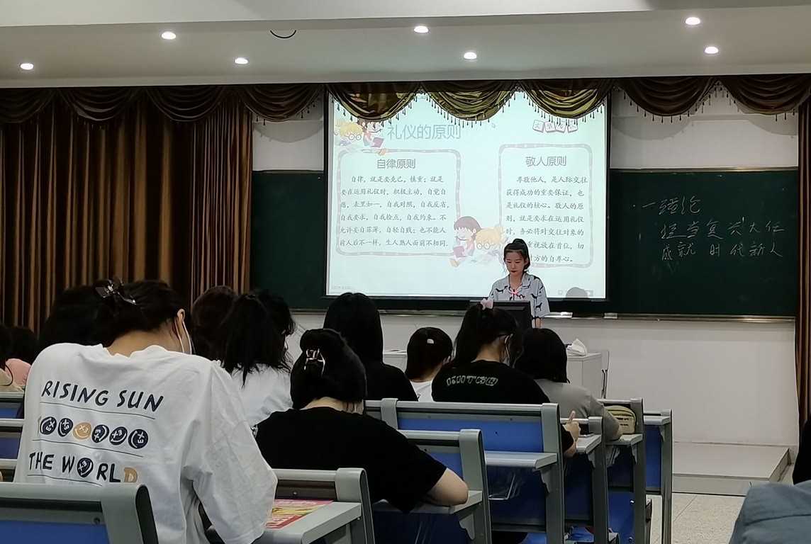 本次主题班会以专业为单位组织展开。首先辅导员给同学们介绍了课堂礼仪服饰仪表、待人礼仪、公共场合礼仪等校园文明相关内容,发出了“展礼仪丰采,做文明学生”的倡议。通过此次主题班会地学习,学生们更加理解了文明礼貌的重要性。最后,学生代表为大家讲述他们本次所学习到的文明知识和感想,大家纷纷表示都要做文明懂礼之人,做文明大学生。