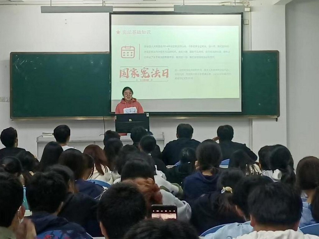“学宪法,讲宪法”。为认真学习宣传贯彻党的二十大精神,深入学习贯彻习近平法治思想。于2022年11月27日晚在各阶梯教室,由药学系各个辅导员老师组织开展关于“2022年宪法进校园”为主题的教育班会。出席此次主题教育班会的是药学系全体同学。