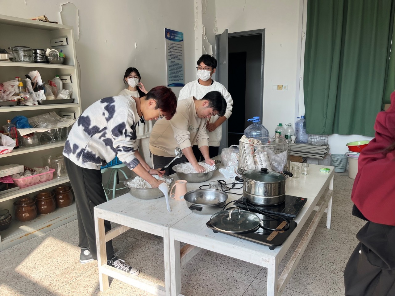 为丰富校园文化生活,进一步增进同学们团队合作能力。药学与健康管理系于12月22日中午11:00-14:00在高压室举办冬至制作手工汤圆活动,参加此次活动的人员是药学与健康管理系的同学们。