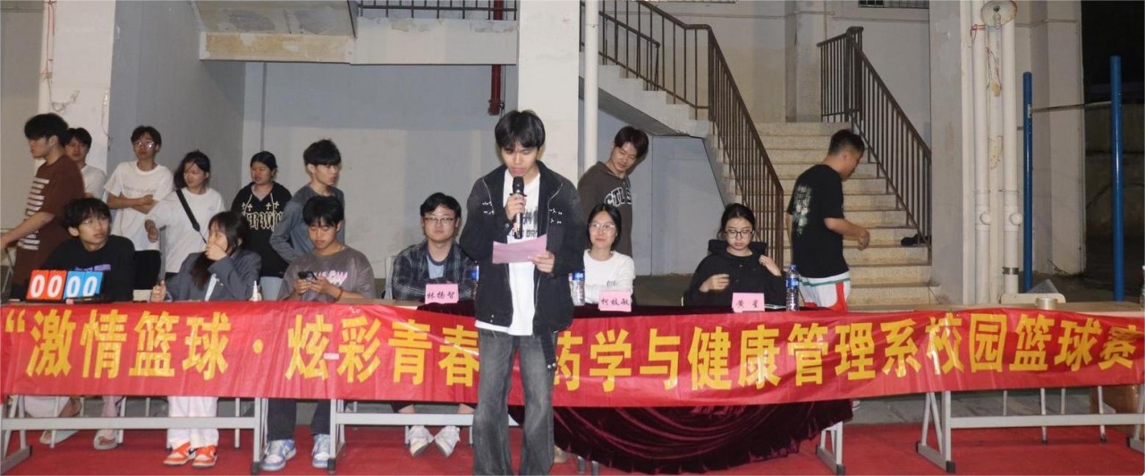 5月14日晚上7:00,福州黎明职业技术学院药学与健康管理系第一届“追梦杯”3V3篮球赛决赛在篮球场正式举行。经过前期初赛对打,抉择出22药剂专业的“药剂队”、22食检专业的“食检队”、23药剂专业的“裁判说得都队”和来自23食检专业的“1t队”参加本次决赛场的比赛,到场的还有辅导员黄星老师、林扬智老师和柯枝敏老师,以及各班组成的啦啦队员。
