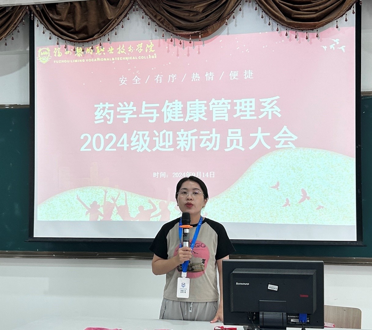 为扎实做好新生报到工作,展现我系师生的良好形象。药学与健康管理于2024年9月14日中午12:00在阶级二教室召开“药学与健康管理系2024级迎新动员大会”参与本次大会的成员有药学与健康管理系党支部书记郑爱清、团总支副书记黄星、辅导员林扬智、柯枝敏、曹文干以及两委一会全体干部和辅导员助理、志愿者等。