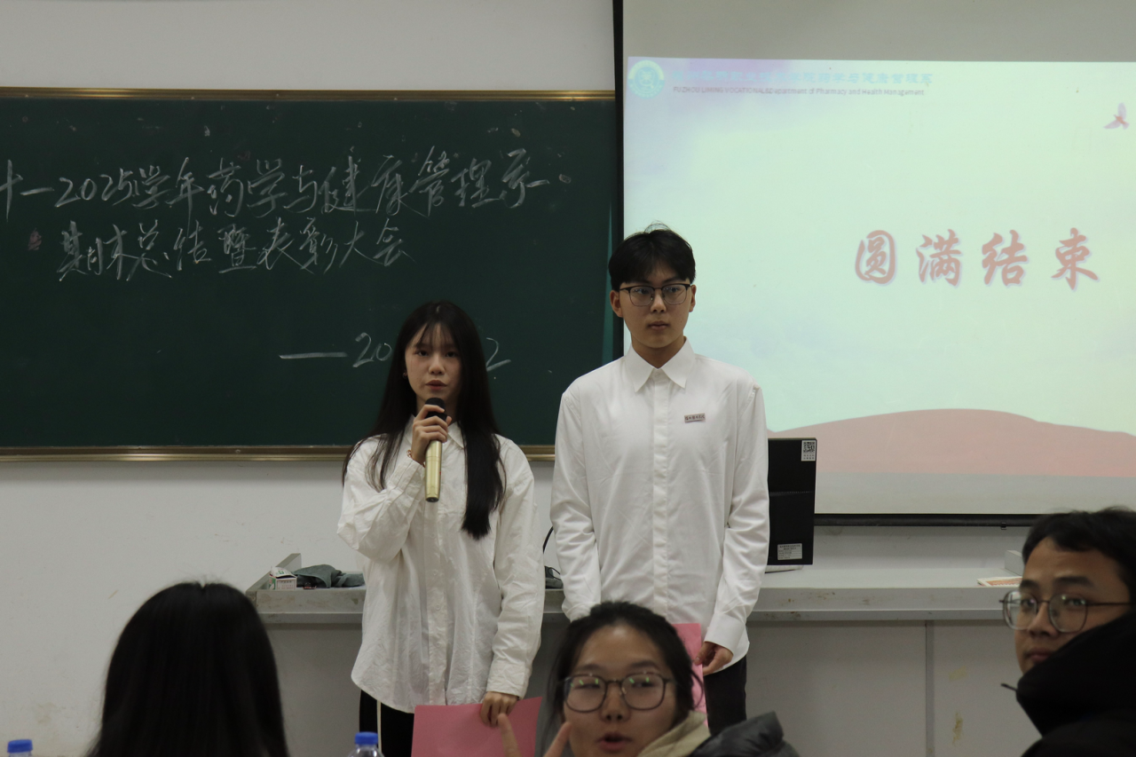 春暖花开、万物舒然之际,为表彰进步进取,树立学习榜样,激励所有同学们奋发向上。 2025 年 1 月 2 日下午 5:30药学与健康管理系期末表彰大会在综合楼 307 教室正式举行。辅导员老师、各专业师生代表齐聚一堂,共同见证这一荣耀时刻。