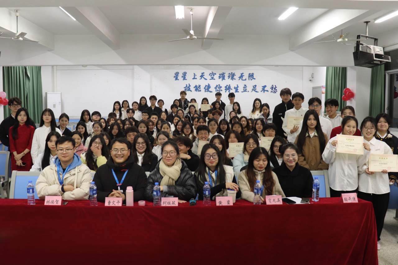 本次表彰涵盖了学业成绩优异、品德表现突出、社团活动积极、优秀共青团员等多个方面,共评选出多名优秀学生、多个优秀宿舍以及多个单项奖获得者。随后,获奖学生代表李硕上台发言,她分享了自己在学习和生活中的经验与感悟,感恩老师的辛勤付出和同学们的帮助,并表示会再接再厉,为学校争光。接着,教师代表柯枝敏老师发言,对获奖学生表示祝贺,鼓励全体同学以他们为榜样,努力奋进,追求卓越。