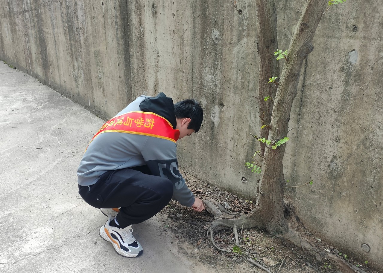 杂草分布区域广、草根扎得深,为了提高除草质量,活动参与者们用耙子、铁铲、锄头等工具配合齐心协力清除杂草,对扎根深、难以除掉的杂草,就徒手将其连根拔起,大家充分发挥团队协作精神,分工明确,互相协作,个个干劲足。放眼望去,葱郁翠绿的草地和校内志愿者们构成了一道“万绿丛中红星亮”的独特风景。经过大家的辛勤劳作,杂草枯枝都被清除干净,垃圾也都一并清理了,环境变得更加整洁有序,卫生情况也得到了有效改善,还给全校同学一个舒适整洁、环境优美的校园环境。