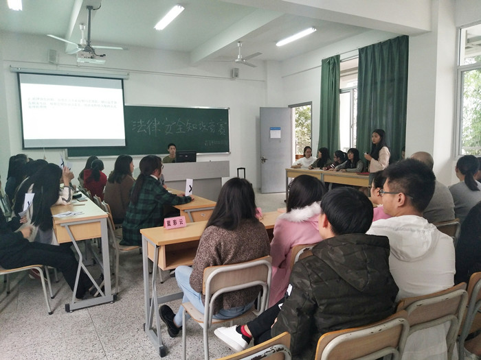 2017年11月28日下午3点由药学系学习部举办的第六届主题为“法治校园,律动我心”法律安全知识竞赛在新教学楼405成功举办。到场的嘉宾有药学系副主任曾建雄教授,药学系党支部书记郑爱清老师,药学系辅导员唐琳老师,药学系池玉芬老师,查珍珍老师,蓝彩云老师。