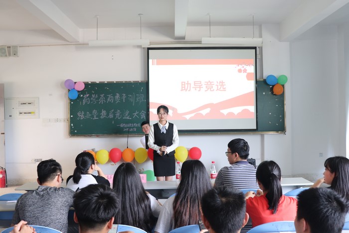 活动开始之前,全体同学起立奏唱团歌。接下来由学生代表进行发言,并由辅导员姚冠华老师为干训班各组组长颁发结业证书。最后开始进行学生干部的竞选,本次竞选分为二个环节:第一环节是助导竞选,第二环节两委干部换届竞选,在竞选过程中,每位竞选的同学们都做了充足的准备,进行三分钟的竞选演讲。竞选同学说出了自己所要竞选的职位和对以后的部门规划,竞选演讲结束后嘉宾以及给部门负责人对竞选的同学进行提问。