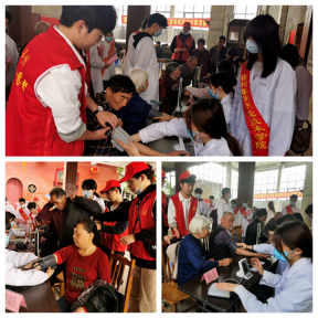 为庆祝中国共产党建党100周年,充分发挥基层党组织和党员先锋模范作用,提高村民的健康知识水平,增强居民的健康保护意识,让村民在自家门前就能享受到医疗保健服务。4月16日上午,建筑工程系党支部、双龙村党支部、药学系团总支三个部门共同开展了不忘初心跟党走  革命薪火代代传”庆祝中国共产党建党100周年主题党日暨志愿者服务活动。此次志愿者服务活动的项目有测量血压、测量血糖、卫生保健知识宣传。
