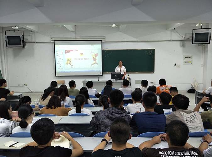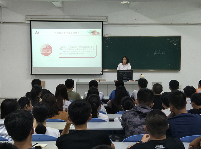 在新生报到之际,为充分发挥党团组织教育青年的功能,进一步加大对大一新生的培养教育力度,9月11日晚上7点,我系团总支书记、党支部书记孙丽平老师、书记助理阮碧玲、范孙宇在综合楼327给全体新生开展“党团教育”。