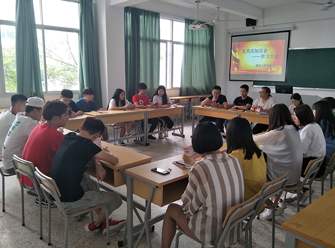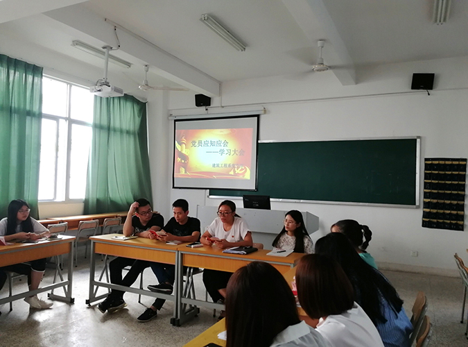 9月28日下午3点半,建筑工程系在新教学楼A301召开了全体学生党员及入党积极分子 “应知应会”学习交流会,会议由党支部书记孙丽平老师主持。