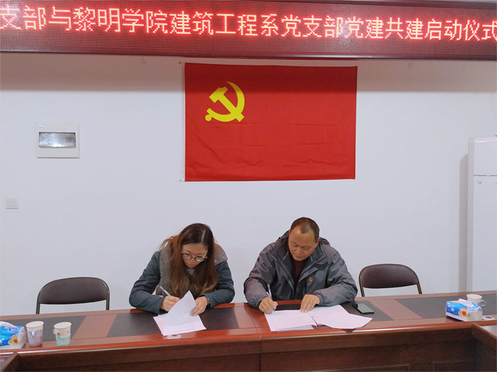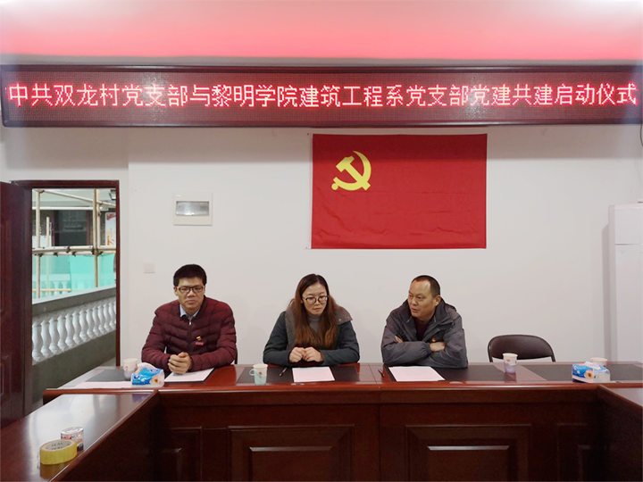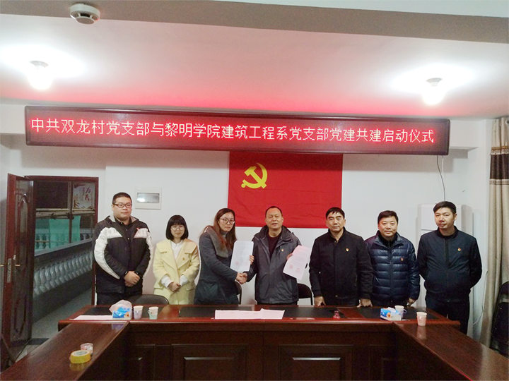 为认真学习贯彻党的十九大精神,深入推进基层党支部达标创星建设,加强和创新我支部建设,本着资源共享、优势互补、互相促进的原则,2018年11月2日下午,中共黎明学院建筑工程系党支部与中共双龙村党支部在地球村村委会议室举行进行结对共建签约仪式。黎明学院党委副书记刘鹏、建筑工程系党支部书记孙丽平与双龙村党支部书记黄建新签订了基层党组织共建协议书。