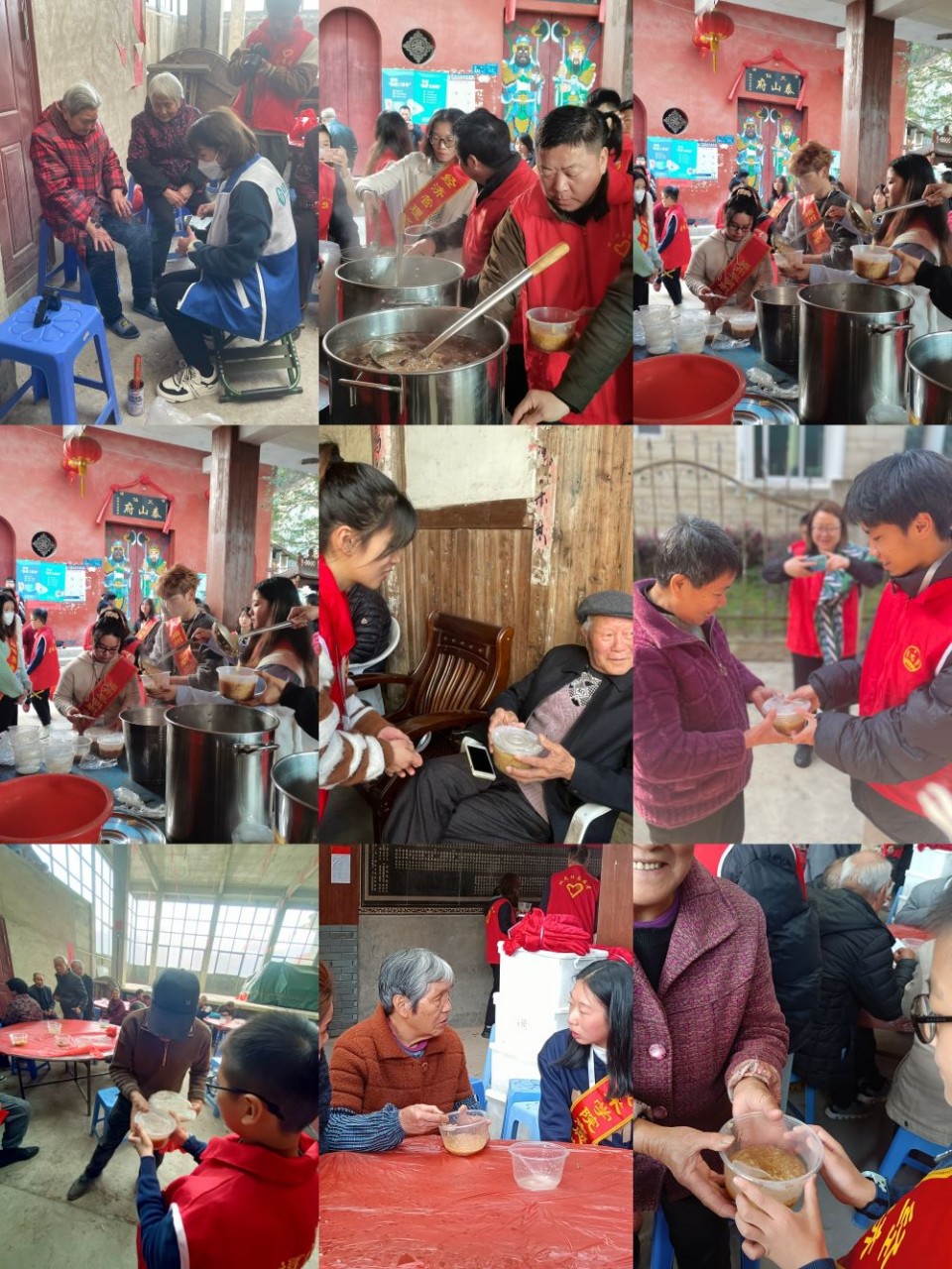 2月19日上午,党员志愿者不仅走进双龙村幸福院,送上一碗碗热腾腾的拗九粥,还走近老人,了解他们的日常生活情况及身体状况,和他们唠家常,耐心为他们讲解健康知识。