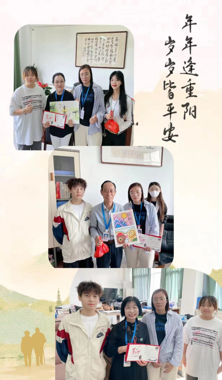 手工繁花映重阳,敬老爱老情意长。志愿者们发挥自身专长,为学院老教师送上精心制作的重阳画作和慰问,向他们致以诚挚的节日祝福。