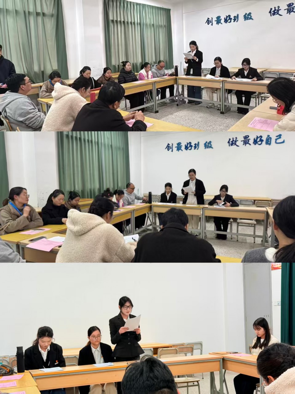 会上,发展对象施华静涵、张怡晨、李鑫同志依次登台,庄严宣读《入党志愿书》。她们结合自身学习成长、工作实践与志愿服务经历,深情汇报了对党的理论认知历程、入党初心使命、个人思想成长轨迹及未来奋斗方向,言辞恳切地表达了加入中国共产党的强烈愿望和为党的事业矢志奋斗的坚定决心,展现出新时代青年向党组织靠拢的赤诚之心。